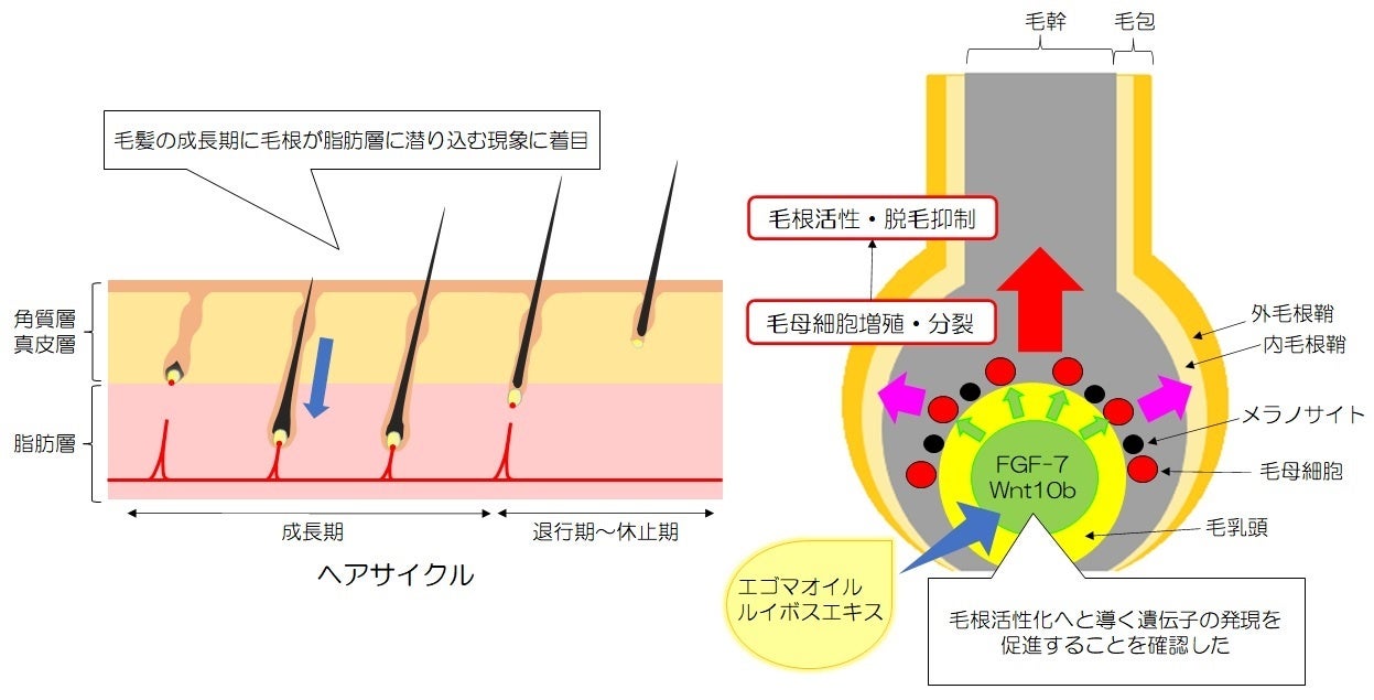 ・エゴマオイル・ルイボスエキスの組み合わせが育毛関連遺伝子の発現を促進し毛根活性化の機能を高めることを発見