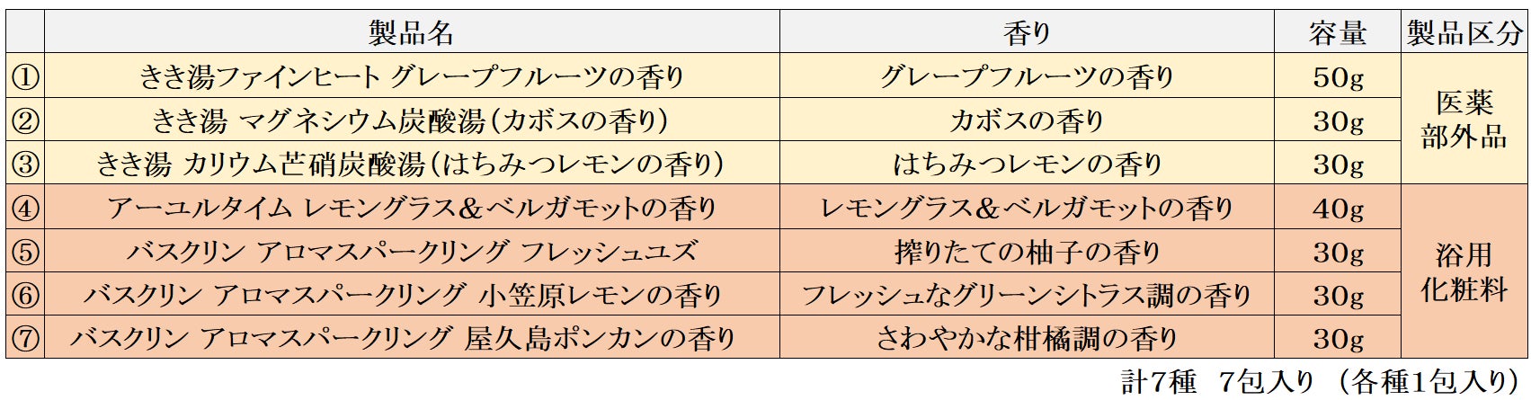そこで、当社の商品の中から柑橘系の香りだけをセレクトしたアソートタイプの商品を発売します。様々な入浴剤を販売している株式会社バスクリンだから提案できるアソート商品です。