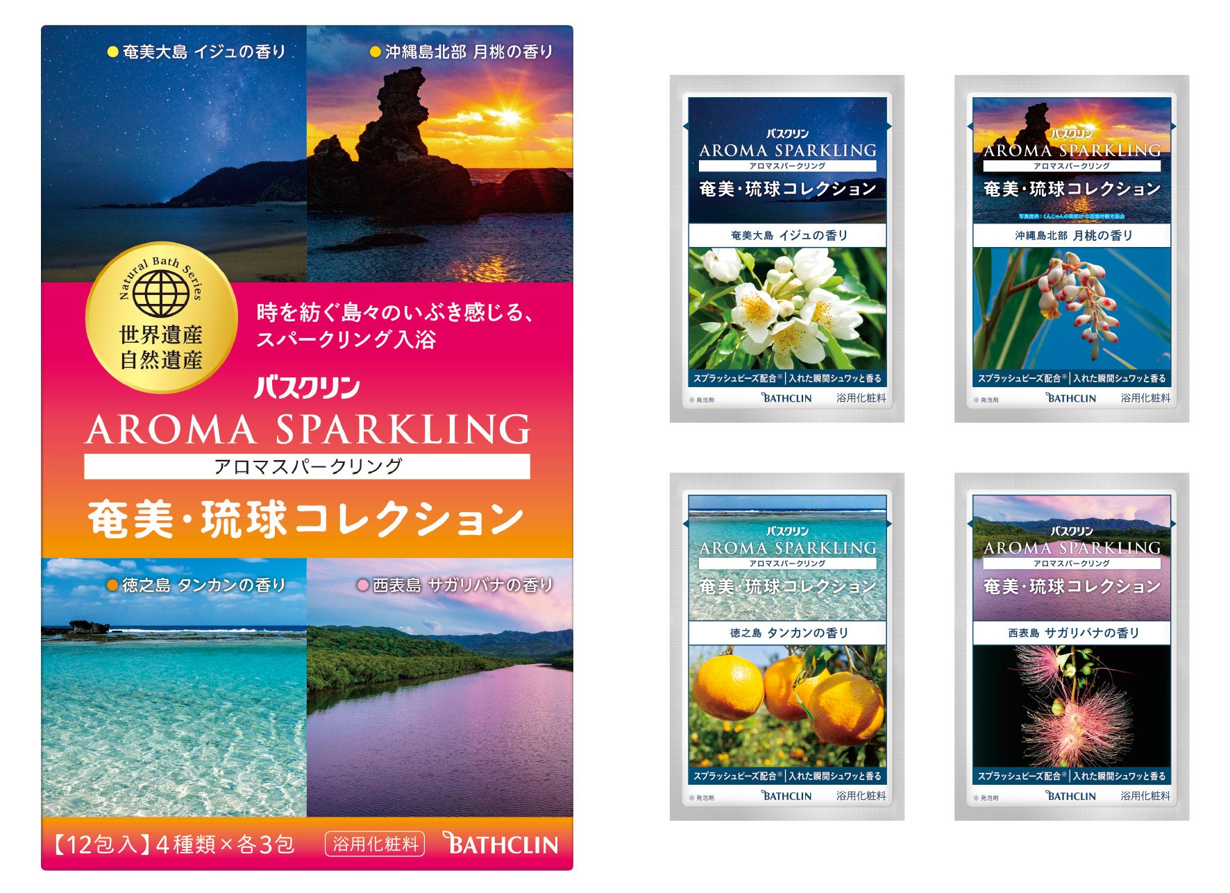 2019年から販売している「バスクリン アロマスパークリング ナチュラルバスシリーズ」は、当社の調香師が現地を体感して開発した香りで、非日常感を味わえるとご好評いただいております。このたび、2021年7月に世界自然遺産に登録された「奄美大島、徳之島、沖縄島北部及び西表島」をテーマとして、「バスクリン アロマスパークリング 奄美・琉球コレクション」を新発売いたします。自宅のお風呂で”日本の自然遺産めぐり”をしたような気分をお楽しみください。