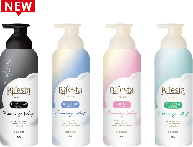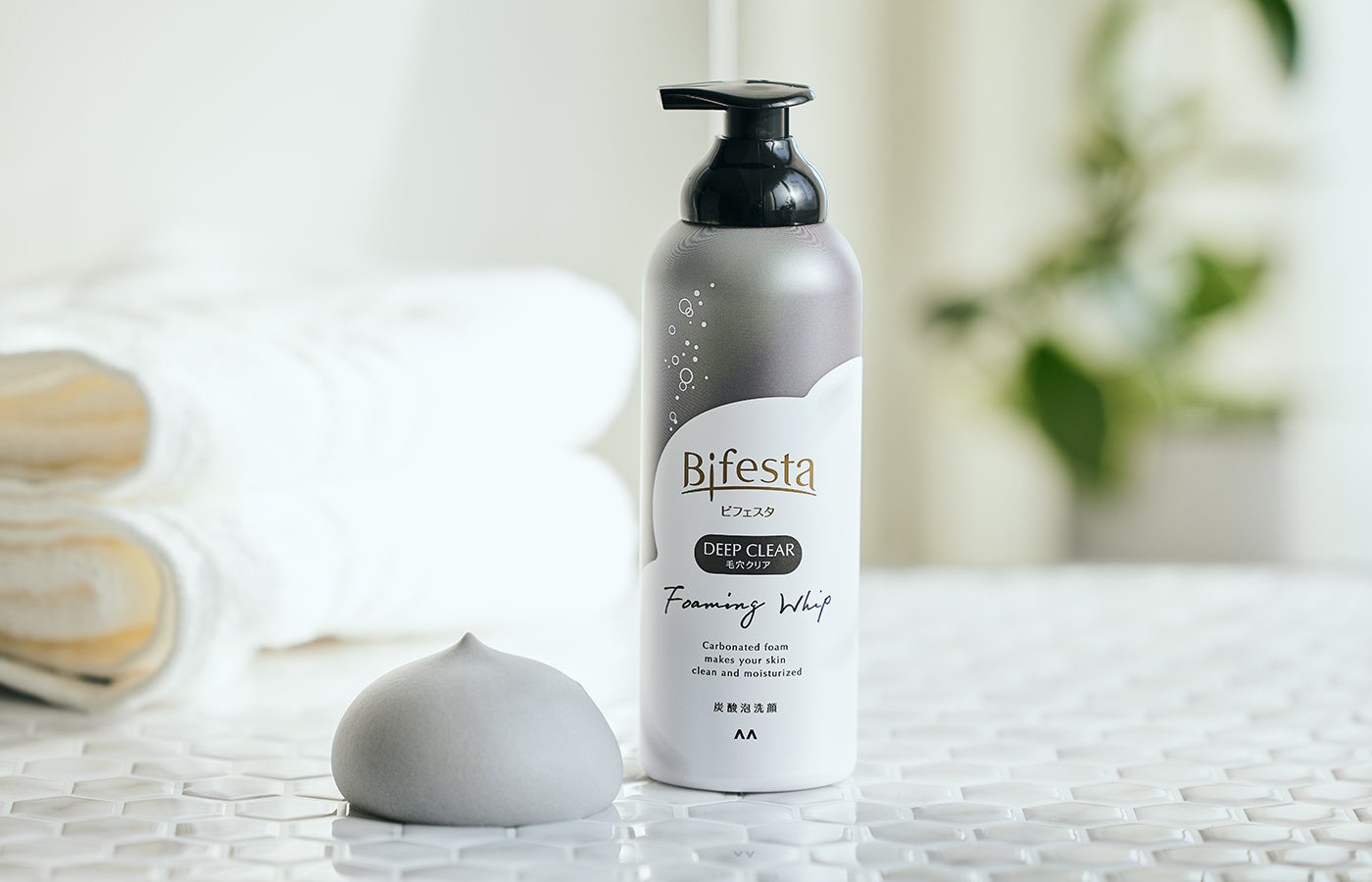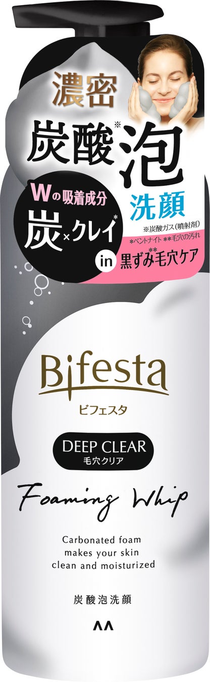 そこで、炭酸※1を含んだ手では作れないほどの濃密泡で、皮脂や角栓など毛穴の奥の汚れまでやさしく洗える「ビフェスタ 泡洗顔」から、シリーズで最も高い洗浄力の「ディープクリア」を新発売します。毛穴ケアと皮脂クリアにこだわり、炭(吸着成分)とクレイ(吸着成分)※2を配合しているので、サッパリとした洗い心地で後肌もスッキリと仕上がります。