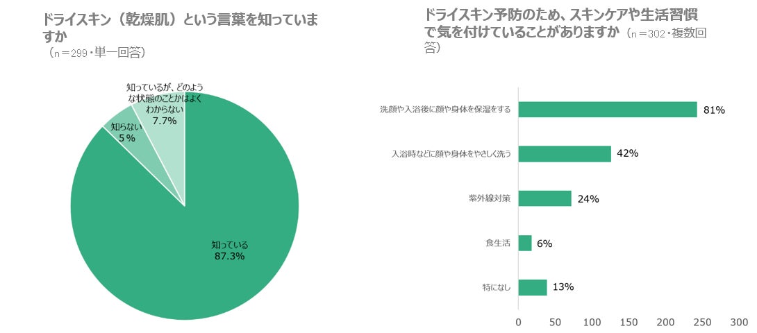 「ドライスキン(乾燥肌)という言葉を知っている」と回答した人は全体の9割近くいるなか、「言葉は知ってい