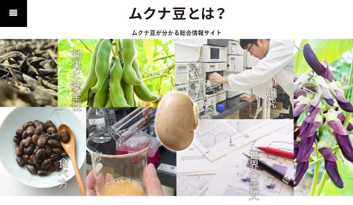 『ムクナ豆とは?』は「ムクナ豆を正しい知識でいつもの食卓に」をコンセプトに、「ムクナ豆」の情報を発信するWEBサイトです。ムクナ豆は体内でドーパミンに変わる、天然の「L-ドーパ(エルドーパ、レボドパ)」を含むとして注目されている希少植物です。サイト内では科学的根拠・データに基づいた海外の論文や国内の最新情報などを紹介し、近年増えるムクナ豆の雑多な情報を整備することで、認知拡大と正しい情報の普及を目指した日本初のムクナ豆総合情報サイトです。