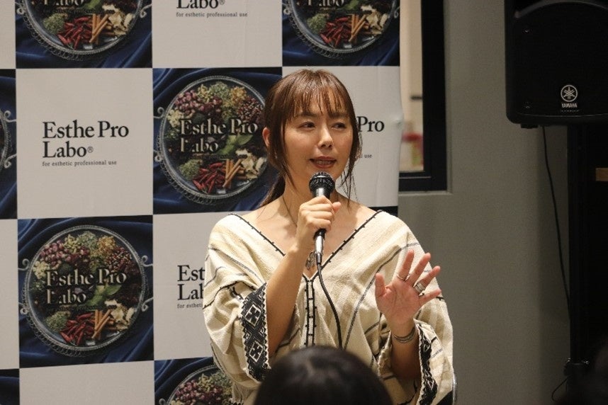イベント終了後は、律子さんが実際に店頭に立ちながら、来場者一人ひとりの食生活・生活習慣をヒアリングし、ご自身のエステプロ・ラボ ブランドアンバサダーとしての経験をもとに健康なカラダ作りの提案をしていました。