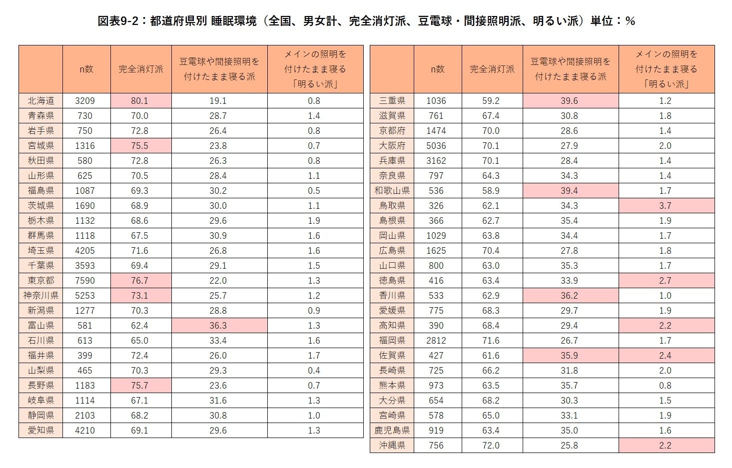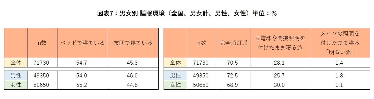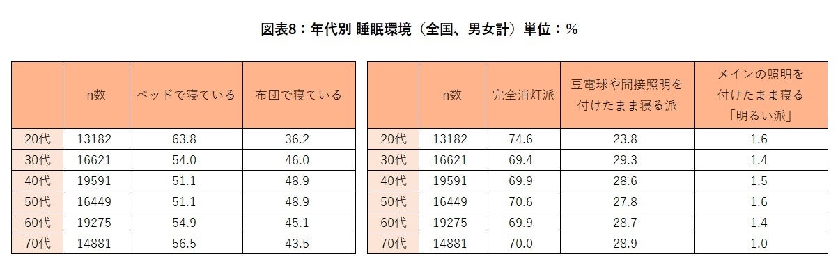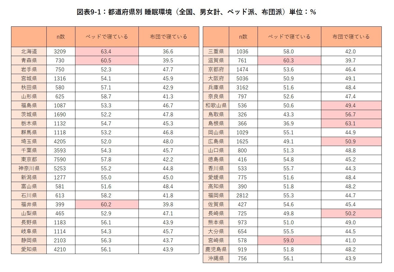 - 寝床や睡眠時の照明など、睡眠環境を調査!中国地方では布団派が多い傾向に