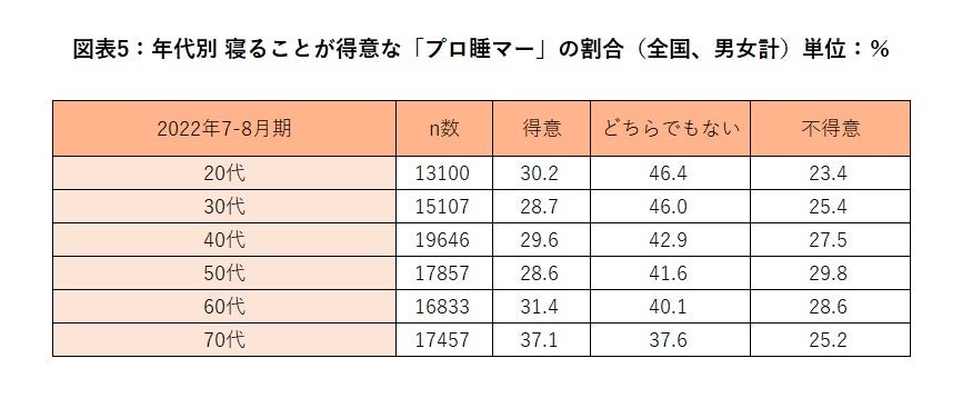 - 最も寝るのが得意なのは70代!役割多く働く世代30代~50代との差が明確に