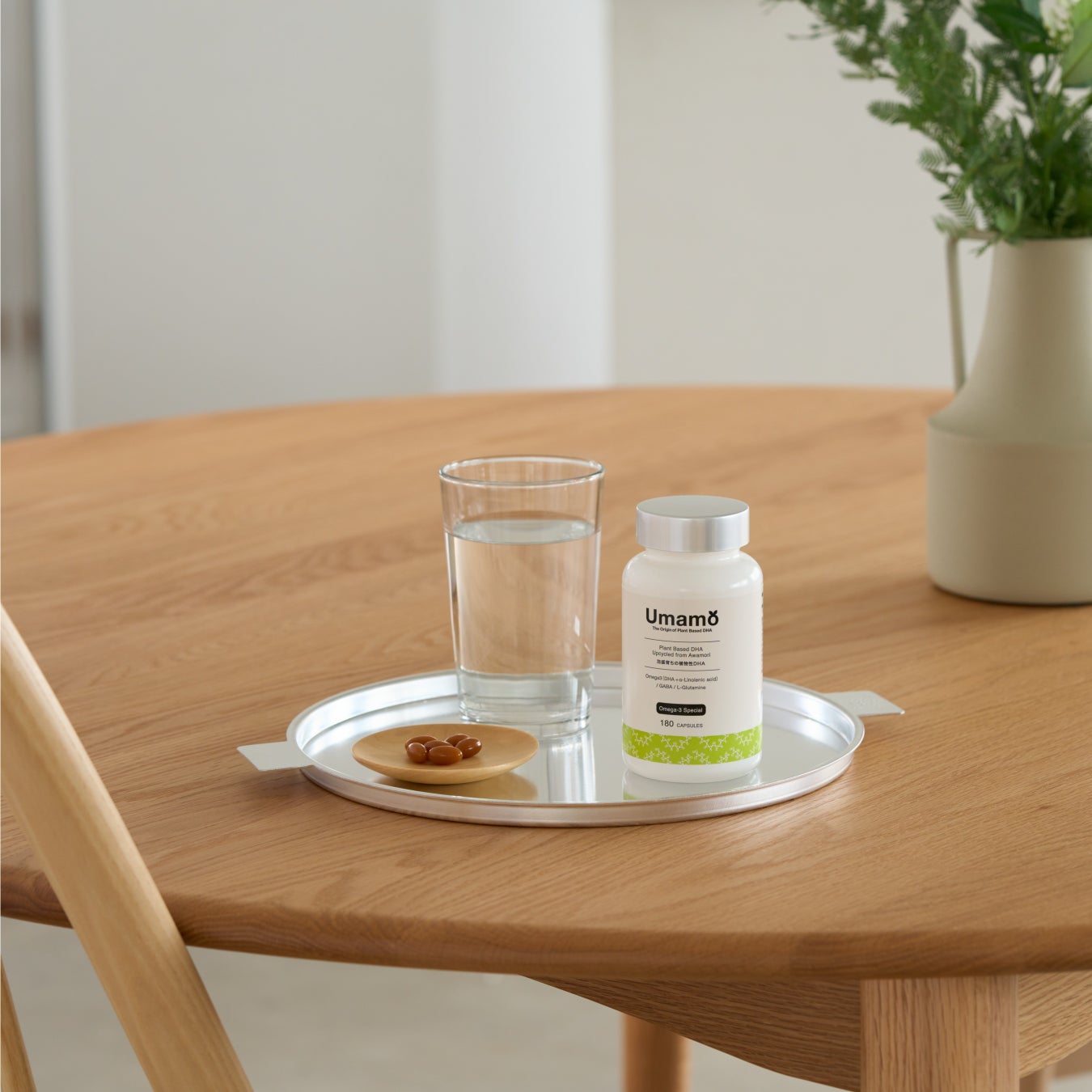 1粒に100億個のUmamoを植物性のOmega-3であるアマニオイルとエゴマオイルで包み込んだ自然派植物性サプリメント。豊富なDHA、GABA、BCAA、アルギニンなどの現代人に嬉しい栄養素を同時に摂取出来るマルチOmega-3サプリメントです。加工原料を使用せず、食べられる植物性素材のみで完成したサプリメントなので、動物性食品に抵抗感のある方、自然なものから安心して栄養を摂りたい方、“藻活”に興味のある方にもおすすめです。また、魚とは異なり、Umamoは水銀フリーのDHA素材なので、妊婦の方や小さな お子様がいらっしゃる方でも、安心してお摂りいただけます。