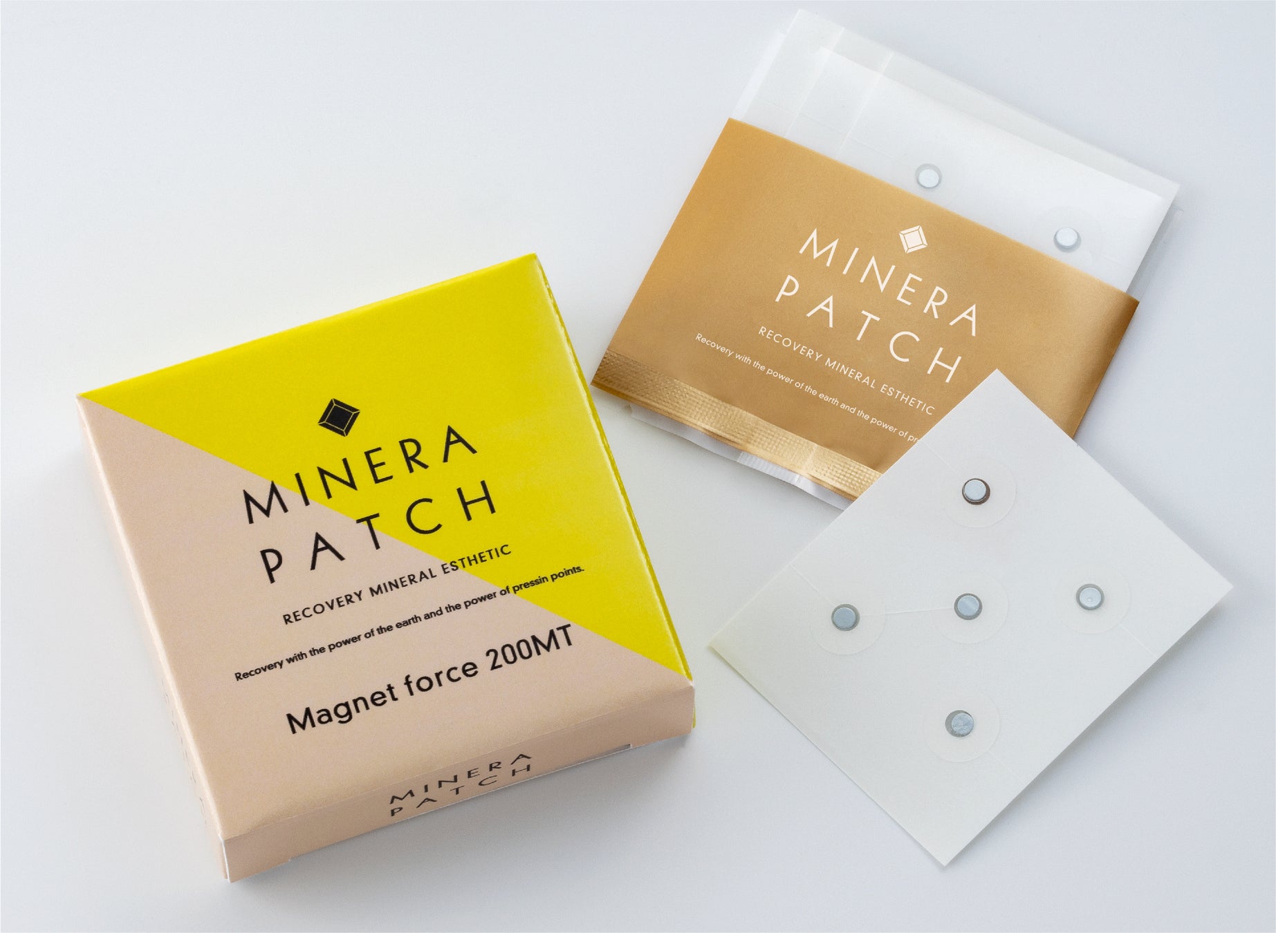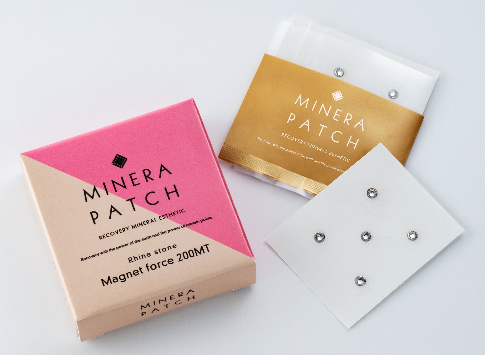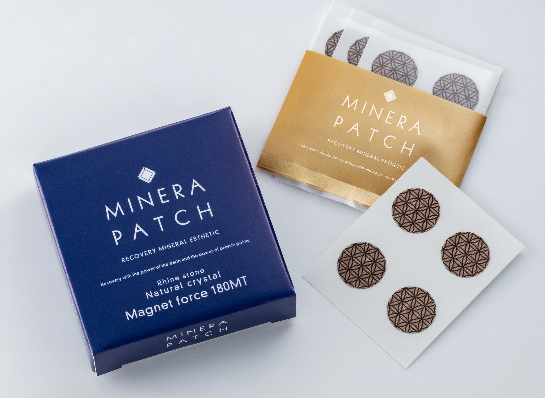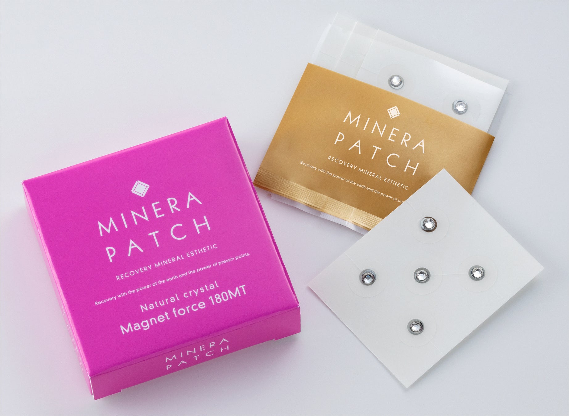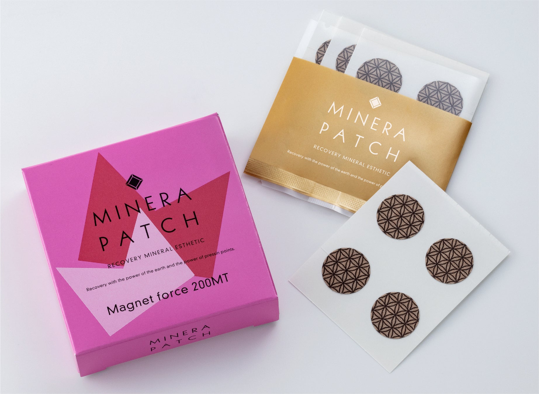 『MINERA PATCH』は磁気と天然石を組み合わせた磁気治療器で、素肌に直接貼るだけで首や肩のコリ、足のむくみ、目の疲れ、肌のハリなど、多くの女性が抱えるトラブルに作用。コリ改善、血行促進、むくみ解消といったさまざまなエステ効果が期待できます。