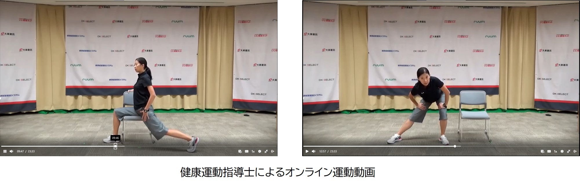 動画では、健康運動指導士より、手軽な運動方法や、腰痛・肩こりを予防・改善する症状別対策を紹介し、運動を始めるきっかけを提供しています。また、リアルタイムでの質疑応答の時間を設け、従業員の主体性を高められるよう工夫しました。