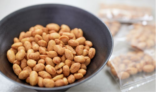 「ポリポリ納豆 」は国内工場で生産管理している安心安全なスナックです。国産大豆100%にこだわり、保存料・着色料は不使用。だからこそ、納豆の持ち味をまるごと楽しめます。常温で6ヶ月保存ができ、緊急事態の常備食、キャンプやアウトドアの携行食としても最適です。