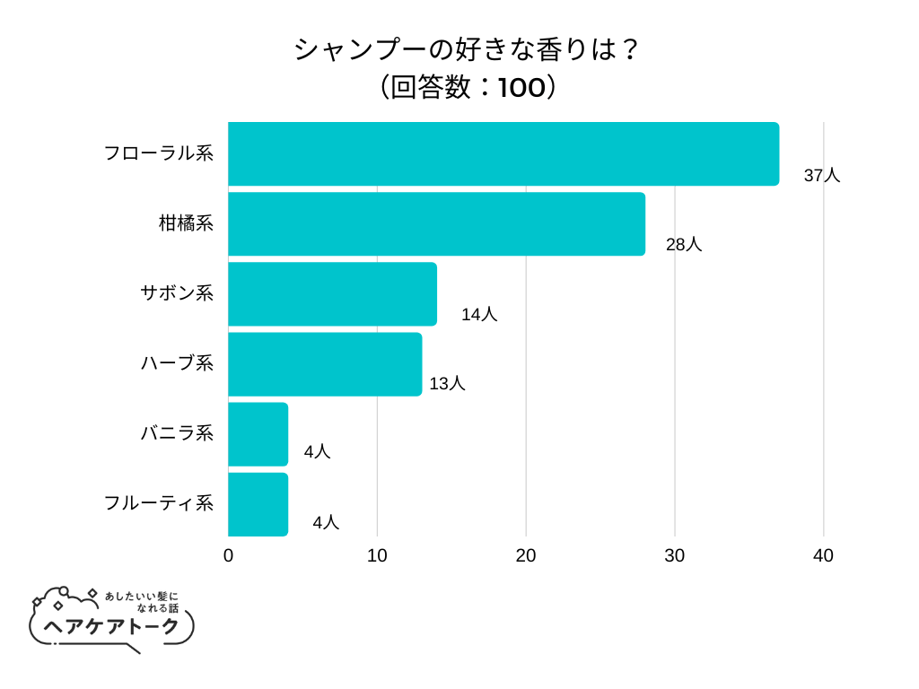 100人にアンケートを行ったところ、「フローラル系」と回答したのは全体の37%でした。