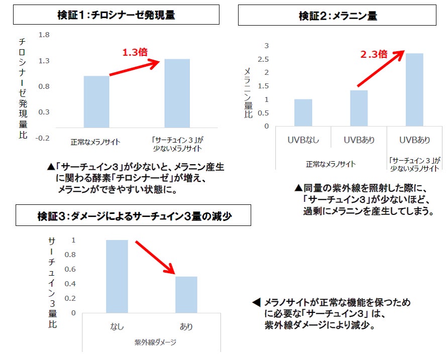 本結果より、「サーチュイン3」の量を増やすことが大人の肌で新たなシミ発生を抑制するアプローチとなる可能性が示唆されました。