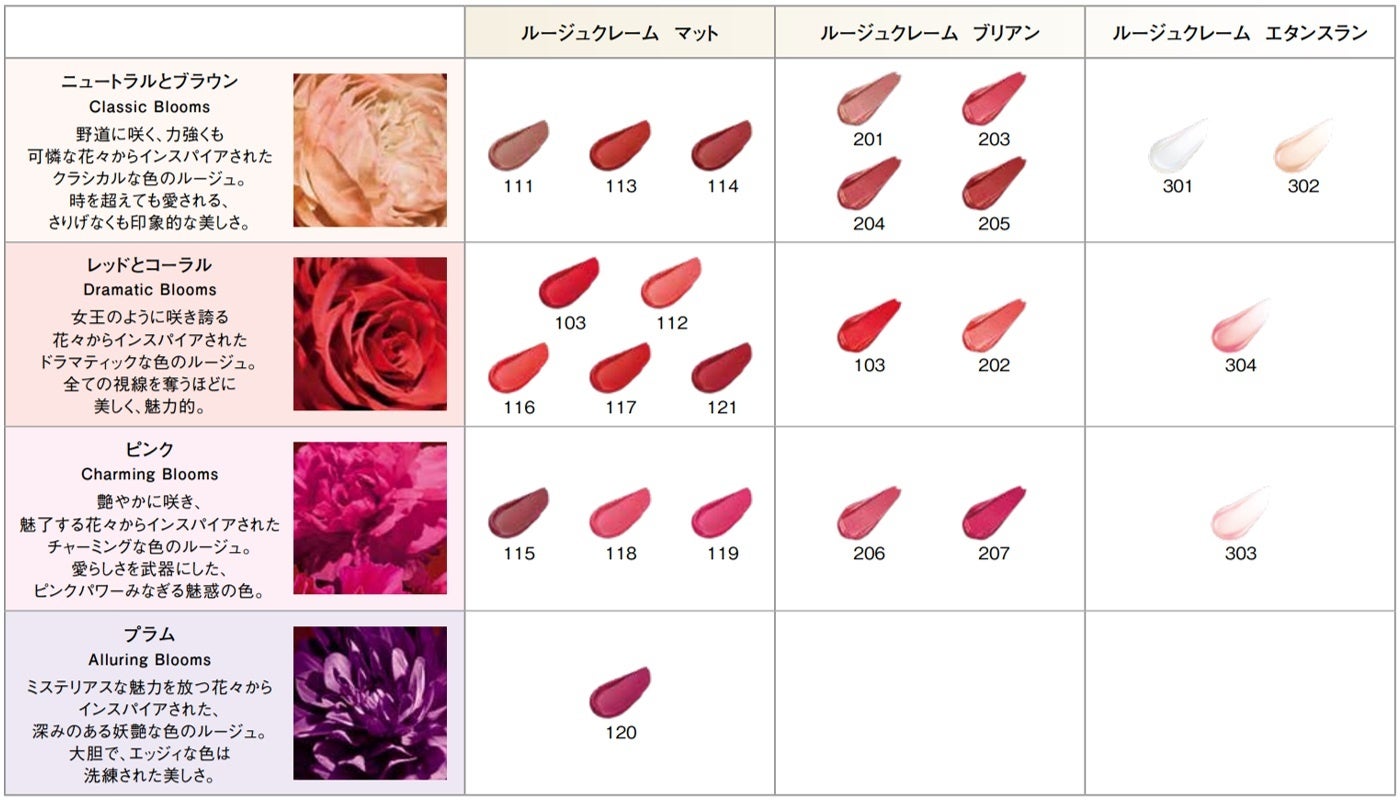 太陽の降り注ぐトロピカルフラワーの輝きを彩り豊かな24色のリップカラーで表現した「ルージュクレーム」は、鮮やかにいきいきと輝く花のように、記憶に残る輝く表情へ導きます。