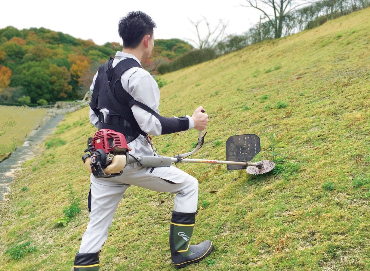 掘削作業、草刈り、雪かきなど腕を使う動作に特化したアシストスーツ。作業時の姿勢を安定させるための姿