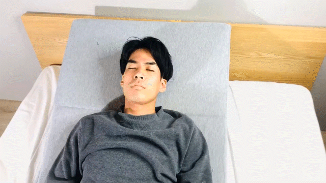 上半身全体を高く保つことで、確かに逆流症状の緩和は期待できます。しかし傾斜角度を高くしすぎると、寝返りも打ちにくく、肩や腰を痛めることになってしまう。そこが従来の三角枕の課題でもありました。