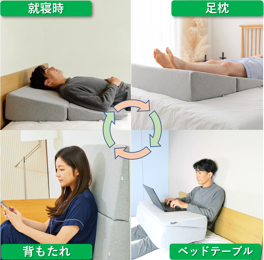 Dr.Shinウエッジピローは合計4通りの使い方ができるので、寝ている時だけではなく自宅で過ごす時間全般で活躍します!