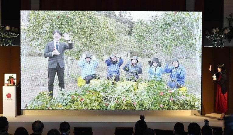 この椿の魅力を日本中に、そして世界中に発信するには吉永さんしかいないと勝手に構想しておりました。そんな吉永さんが実に36年ぶりにスキンケアのPRをしてくださる奇跡に島の皆が心から感謝しております。本当に素晴らしい商品を素晴らしい方々と一緒に成功させて地域創生の成功モデルになれればと思っております。皆様のお力無くしては成功できませんので、引き続きご協力をお願いいたします。」と五島の椿プロジェクトにかける熱い思いを語っていただきました。