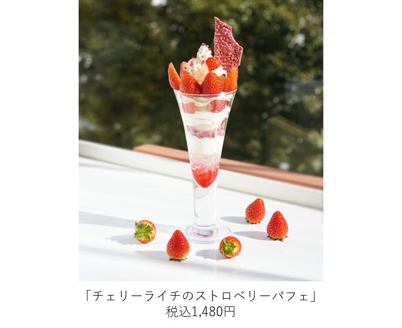 桜の香りにインスパイアされた限定パフェ「チェリーライチのストロベリーパフェ」