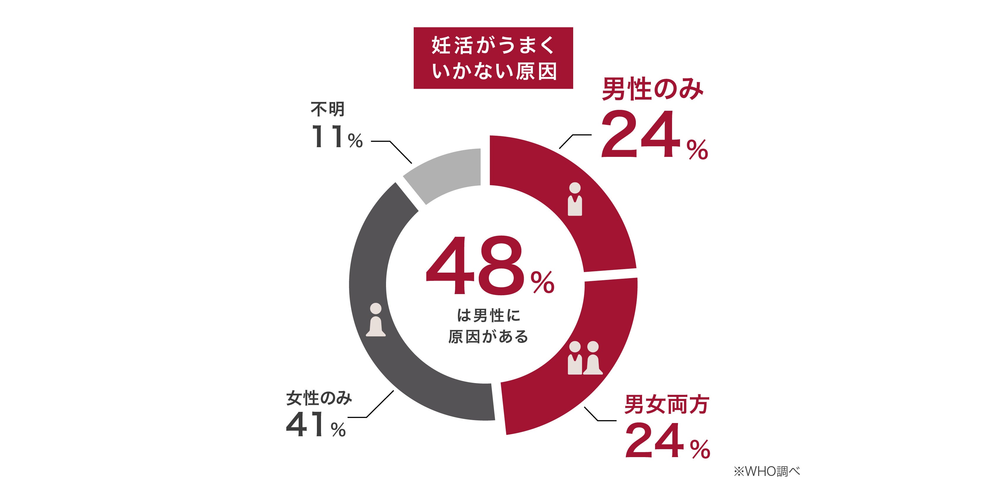 日本では少子化が問題となり、2022年の出生数は過去最低の80万人割れが予想されています。新型コロナウイルスの感染拡大で出産を控える、結婚を先送りする人が増えていることも少子化に拍車をかけていますが、子どもが欲しくてもできない人が増えており、日本は世界一の妊活治療大国とも言われています。「妊活がうまくいかない=女性の問題」と考えてしまう人も少なくないですが、実は妊活がうまくいかない約半分は男性側に原因があります。現代の日本では、男性が原因で妊活がうまくいかないことは決して珍しいものではありません。だからこそ、男性の皆さんにも、女性の皆さんにもこのような実情を知っていただき、男女二人の問題として、協力して妊活に向き合っていただきたいです。