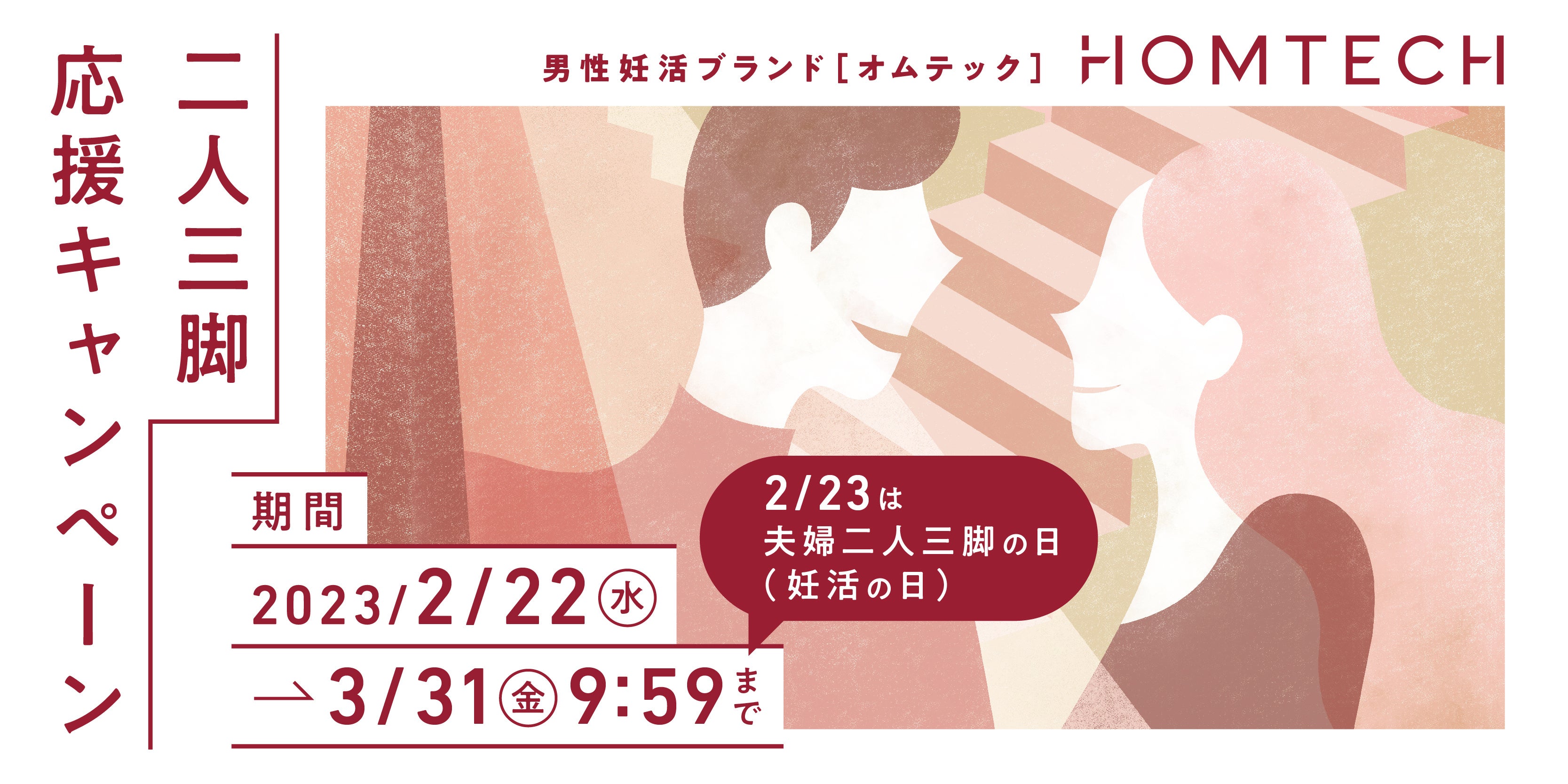 ウェルネスブランド HOMTECH[オムテック]が2月23日の「二人三脚の日」に伴い「夫婦二人三脚応援キャンペーン」をスタート!~妊活を女性だけのものにしない~