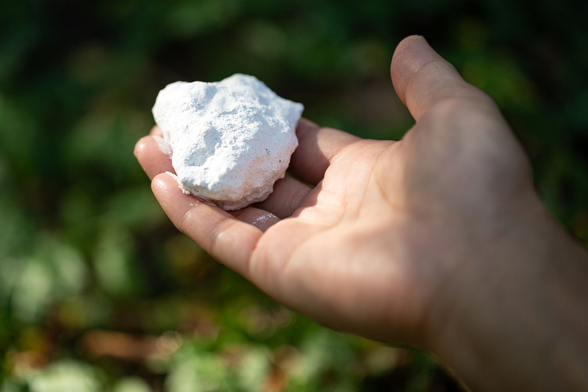 東栄町のセリサイトは、今なお手掘りで、手押しのトロッコを使って丁寧に採掘されています。採掘した原鉱は高い技術力を持つ工場で精製し、純度を高めています。