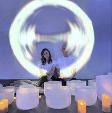 A=432Hz調律のクリスタルボウルなどの水晶の楽器で、寝転びながら音を浴びるサウンドセラピーを奏でる。「宇宙の周波数」とも言われる調律で緊張や思考から離れた感覚優位の深いリラクゼーションへと導く。