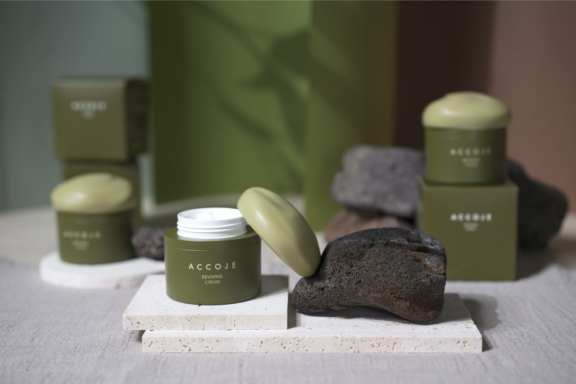 アッコジェの人気の一つであるアッコジェのパッケージは、 綺麗で純粋な自然が現れ、珍しいデザインの蓋は風に削られて自然に屈曲されたチェジュの火山島の形を形象化しました。