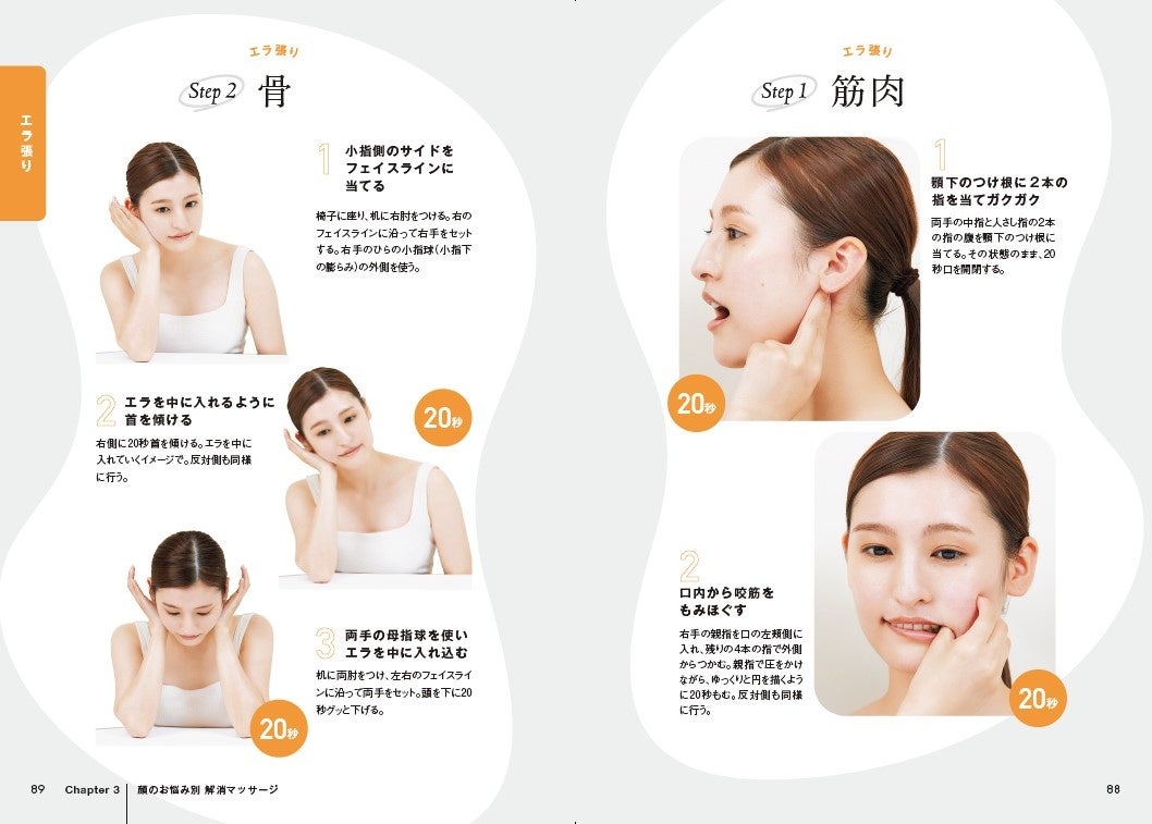 - ほうれい線、エラ張り、面長、頬骨の出っ張り、口元のたるみなど、お悩み別解消マッサージも完全網羅!