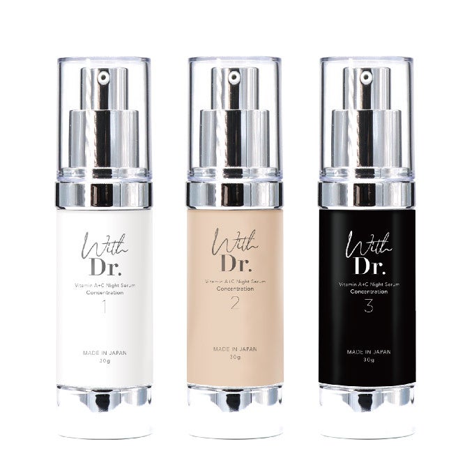 第1弾商品である「ウィズドクター ACナイトセラム」は、皮むけやダウンタイムが発生する海外製品で多く使用される界面活性剤を極力抑えた美容クリームです。攻めと守りのビタミンAが4種類(※1)、ビタミンC誘導体(※2)、ナイアシンアミド(※3)やパンテノール(※4)等注目の成分を贅沢に配合。いつものスキンケアにウィズドクターをプラスオンするだけで使用いただけます。レチノールの配合量に合わせて、レベル1~3までをご用意。これまでクリニックでしか買えなかったレベル3も、2023年2月よりオンラインで販売を開始いたしました。お得な定期コースは、使用日数に合わせて自動でレベルアップ出来る仕組みのため、徐々にレチノールを取り入れることが可能です。