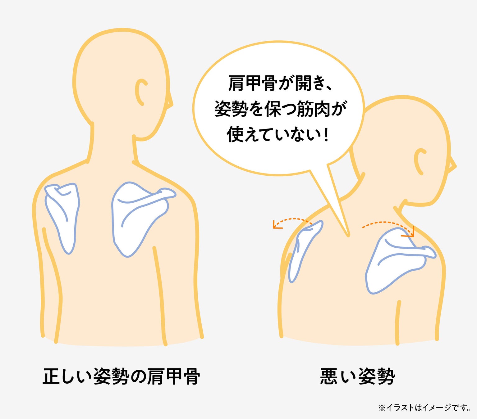 - “猫背”=肩甲骨が開いた状態にフォーカス