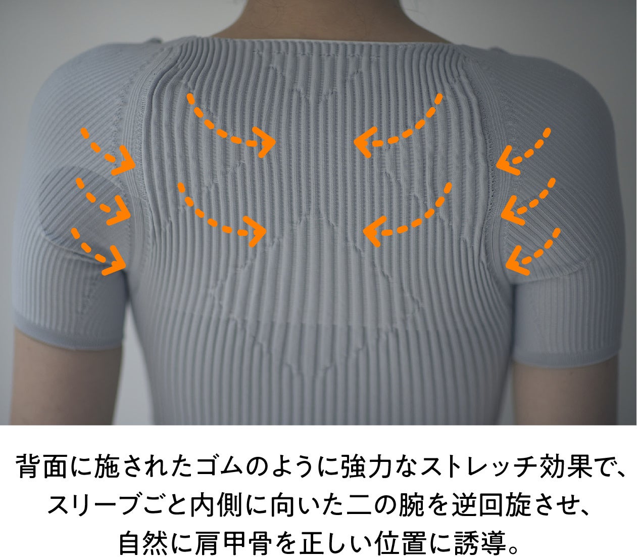 「SHUttona(シュットナル。)」を着用すると、自然と肩甲骨がぐーんと中心に寄るように設計しています。