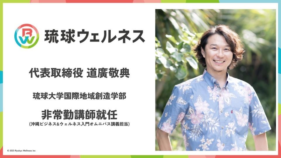 「法人向けウェルネス体験型研修プログラム」や「個人向けカスタマイズ型ウェルネスツアー」などの沖縄特化型ウェルネスツーリズムサービスを提供する株式会社琉球ウェルネス(本社:沖縄県那覇市、代表取締役:道廣敬典)は、国立大学法人琉球大学国際地域創造学部の非常勤講師に就任致しました。