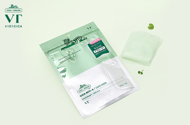 成分の安定性を高めたレチノール誘導体*⁸とVT CICAをたっぷり*⁴含んだ0.4㎜の分厚めシートが肌に密着し、毛穴が目立たない*⁷素肌へ導きます。韓国のヴィーガン認証取得に加え、植物由来のリヨセルと竹で作られた肌への優しさにこだわったシートを採用。8種の植物エキス*¹¹と6種のペプチド*¹²配合により、過剰な皮脂分泌を抑えて油分・水分バランスを整えることで、毛穴レス*⁷でキュっと引き締まったキメ細かい素肌へ。