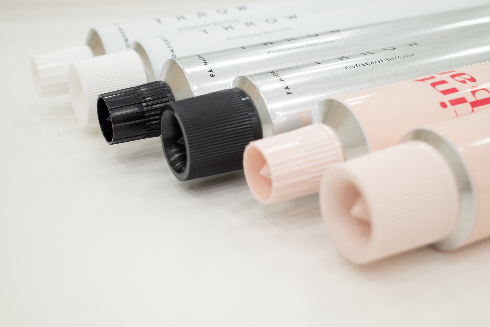 この小型キャップにより、従来のキャップからプラスチック量を54%削減し、全製品の2分の1の出荷量を占めるヘアカラー1剤のプラスチック使用量削減を推進します。小型キャップは今後、チューブタイプのヘアカラー剤全て(対象ブランド:THROW・tintbar・fit color)に採用します。