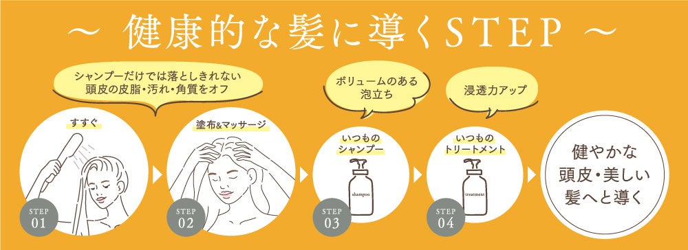 シャンプーだけでは落としきれない頭皮の皮脂・汚れ・角質を取り除きます。