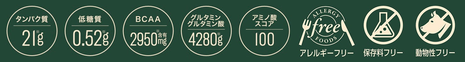 卵や乳、はちみつなどの動物性の食品を含まないビーガン(植物性)プロテイン。豊かな土壌で育った、環境にやさしいプロテイン原料を使用。