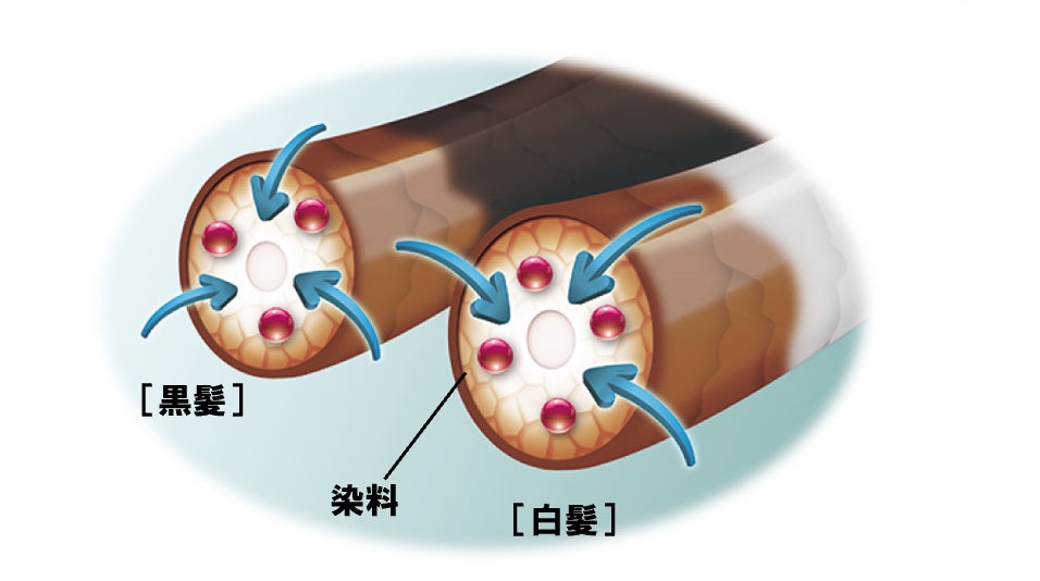 1剤と2剤の混合比と放置時間を見直した新処方。黒髪は明るく白髪は鮮やかに、バランスよく染め上げます。