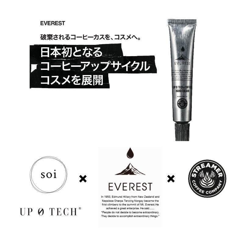 発酵技術でアップサイクル製品を開発する株式会社ソーイ(静岡県沼津市/代表取締役:石垣哲治)は、エシカルコスメを販売している株式会社エベレストジャパン「EVEREST」から化粧品用への技術開発の依頼を受け、クラフトコーヒーの国内パイオニアSTREAMER COFFEE COMPANYのコーヒーの搾りかすを使用したハンドクリーム用のアップサイクル原料を開発しました。そのアップサイクル原料を使用したハンドクリームが株式会社エベレストジャパンから3月より人気アパレルショップや大型最新デパートなどにて先行販売が開始されます