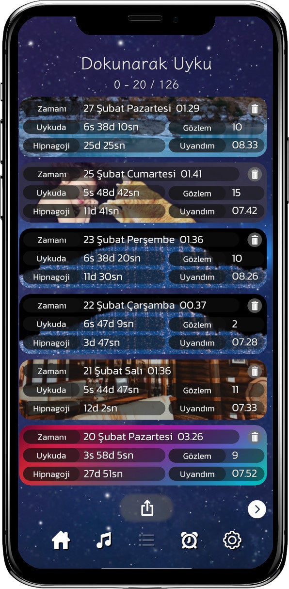 睡眠時間、入眠に至るまでの時間、観測数などのデータを振り返ることで、睡眠の質を確認するだけでなく、ご自身が眠りやすい睡眠コンテンツを見つけることが出来ます。