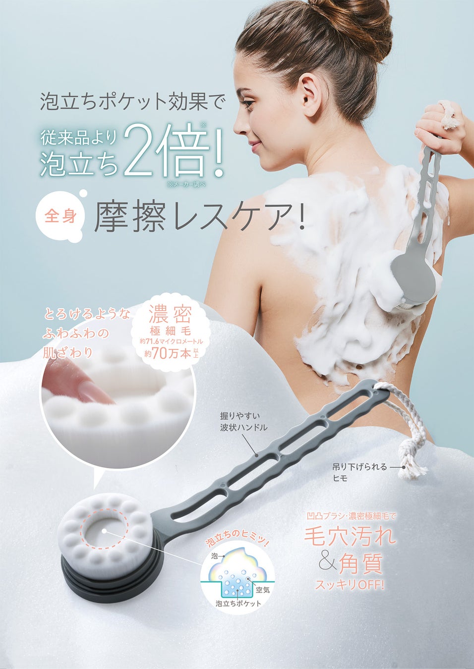 泡立ち2倍!濃密な泡で全身摩擦レスケア!「透明肌 泡立ちボディロングブラシ」を3月1日より発売