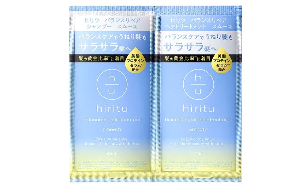 「hiritu」は、美しい髪の黄金比率※1【たんぱく質80%・水分15%・油分5%】に着目。美髪プロテインセラム※2やバランスキープセラム※3などを配合した独自のバランスケア処方で、ダメージや乾燥で乱れた髪を黄金バランス※1に整え、キープ。気になる髪のうねりに多角的にアプローチすることで、毛先まで指通りの良いサラサラ髪へ導きます。