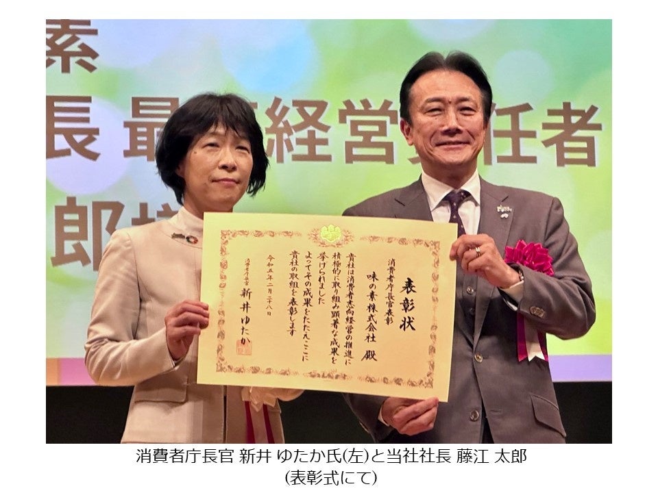 味の素株式会社(社長:藤江 太郎 本社:東京都中央区)は、消費者庁が主催する「令和4年度消費者志向経営優良事例表彰」において消費者庁長官表彰を受賞し、2月28日に表彰式が行われました。
