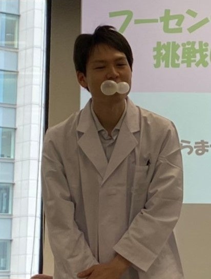- フーセンガム博士が技を披露!ダブルフーセンや巨大フーセンに子どもたちも驚き! 「自分ももっと上手にふくらませられるようになりたい」と意気込む子どもたち!