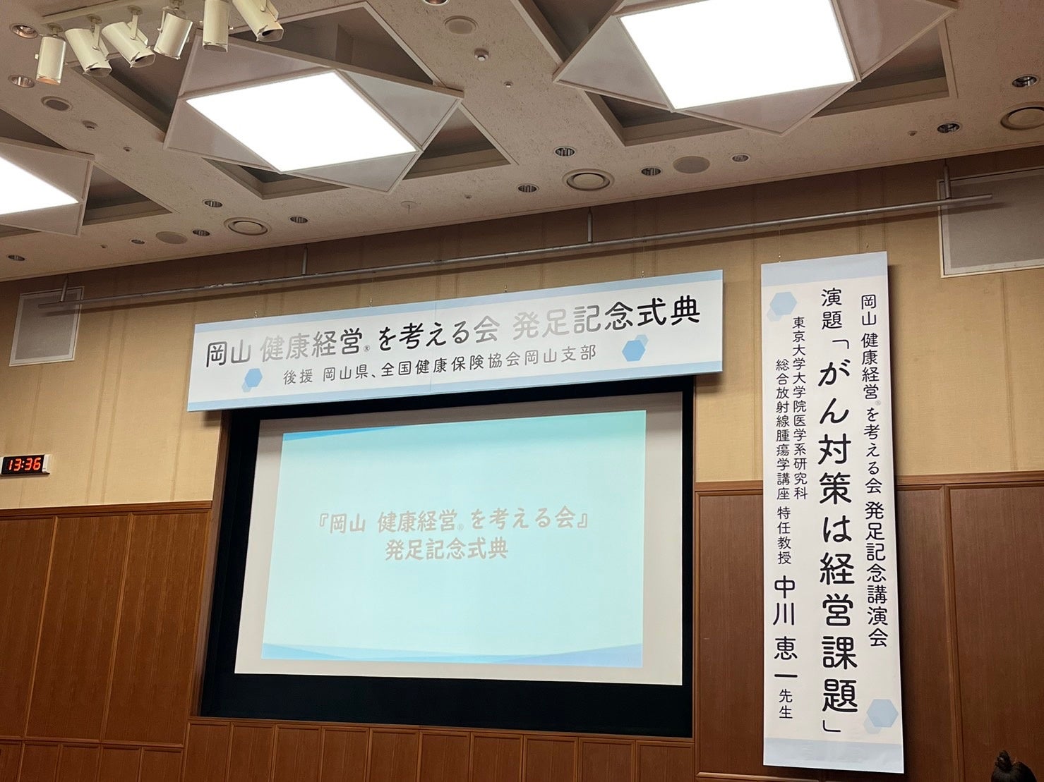 2023年2月10日(金)に「岡山 健康経営®を考える会 発足記念式典・記念講演会」が行われました。本会の趣旨の説明や宣言が行われ、発足を記念して東京大学大学院医学系研究科 総合放射線腫瘍学講座 特任教授 中川恵一先生から「がん対策は経営課題」と題し、がん対策へ企業が積極的に取り組む必要性についての講演がありました。