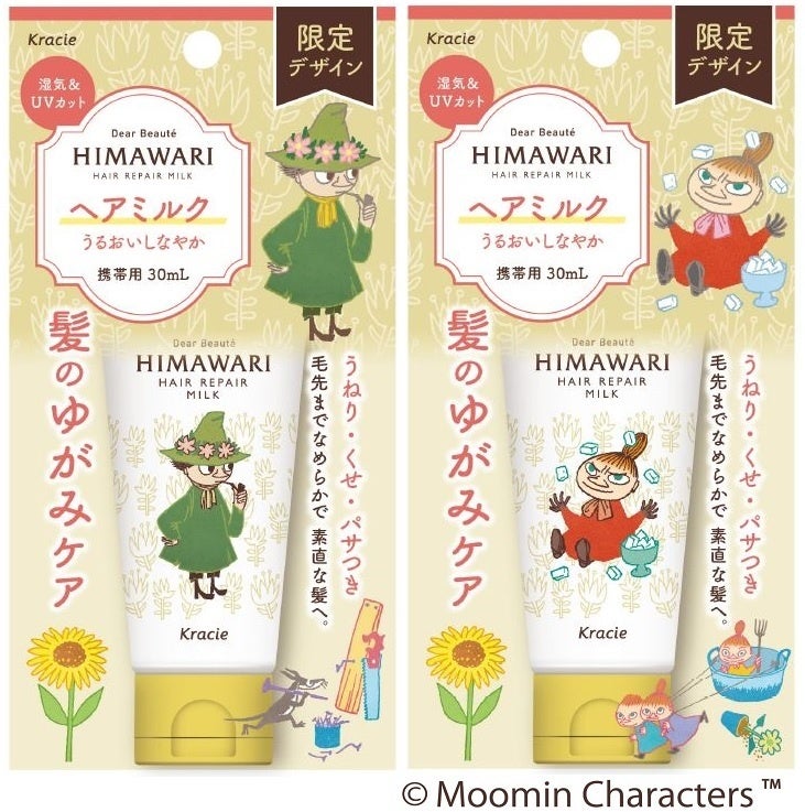 クラシエホームプロダクツは、年齢による髪のうねり、くせ、パサつきの原因となる「髪のゆがみ」(※1)を整え、素直な髪へ導く「ディアボーテ HIMAWARI」から、人気キャラクター「ムーミン」の限定デザイン商品を、2023年3月27日(月)に数量限定で発売いたします。アウトバストリートメントの「プレミアムトリートメントオイル」2種と、「トリートメントリペアミルク」のミニサイズが、「ムーミン」デザインになって登場します。