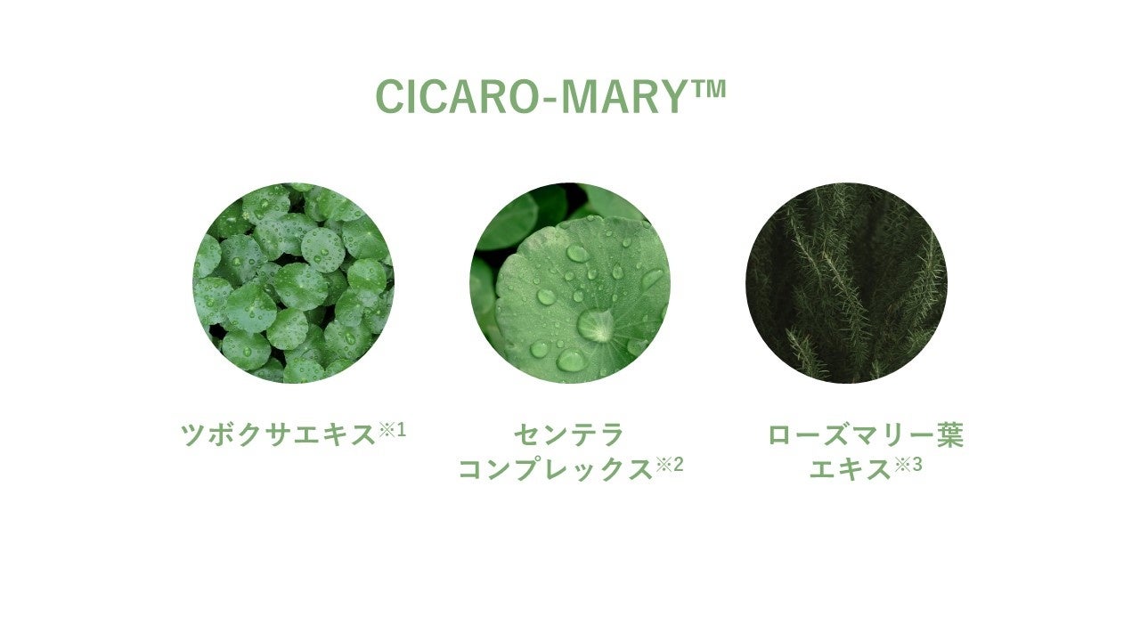 (*)CICAとは、セリ科の植物の「ツボクサ」の学術名。近頃、スキンケ アにおいて高い注目を集めています。