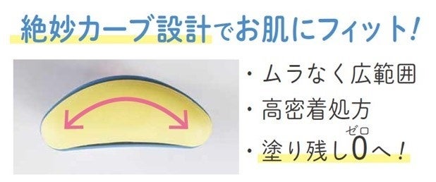 容器が弓形の絶妙カーブ設計になっているため、首筋やお顔の湾曲した部分にもピッタリとフィットし、ムラなく塗ることが出来ます。