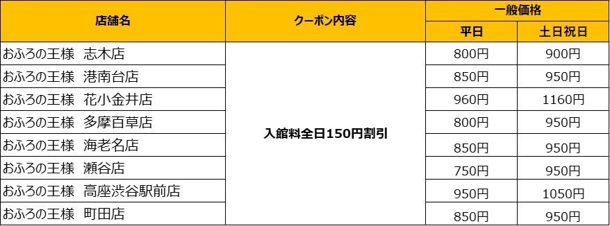 ※おふろの王様 和光店、大井町店は本クーポンの対象外となります。