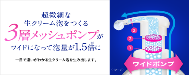独自開発のポンプフォーマーが、多量の空気を取り込んで、1.5倍量※1のボリュームがある泡を作り出します。
