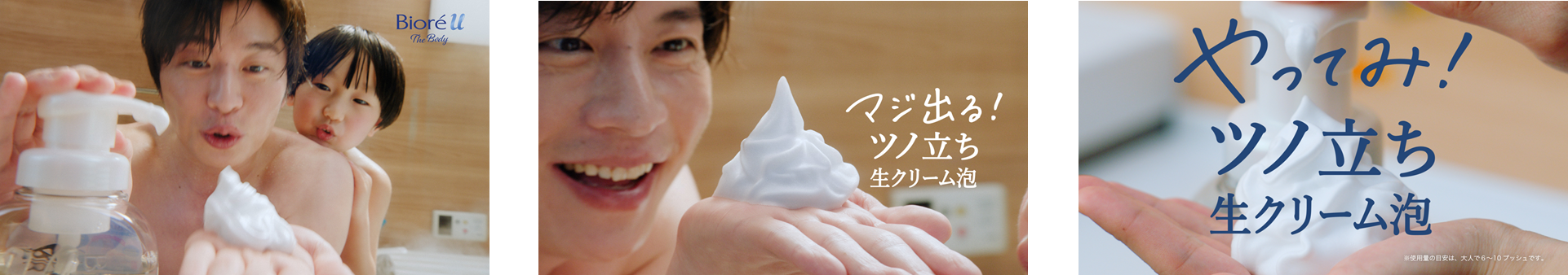 花王 ビオレu ザ ボディ 「やってみ!ツノ立ち生クリーム泡~田中圭篇~」