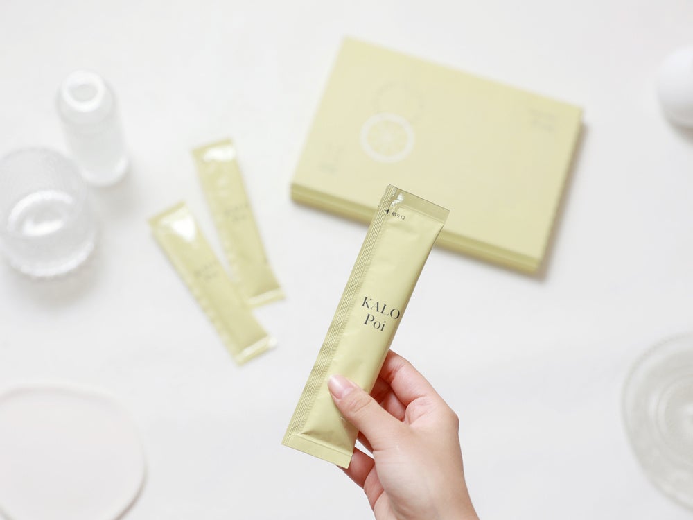 「KALOPoi」は、1本に食物繊維の一種である難消化性デキストリンを5g配合しています。また、コラーゲン(コラーゲンペプチド)をはじめとし、和漢植物エキスやブラックジンジャーエキス、植物発酵エキス、ビタミンCで美と健康もサポート。